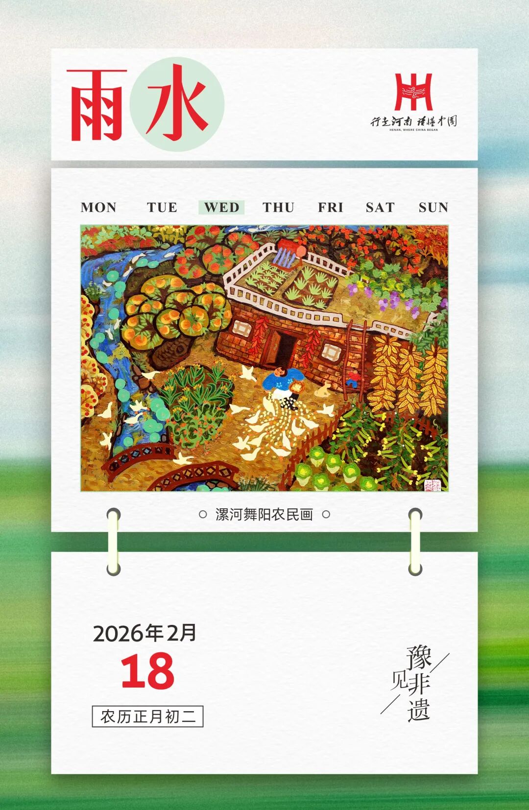 当团圆喜庆遇上草木萌新,舞阳农民画以拙朴热烈的色彩,把中原大地的年俗风情与春日生机一并入画,绘出阖家安康、风调雨顺的美好祈愿,让年味在春雨里更显温润绵长。