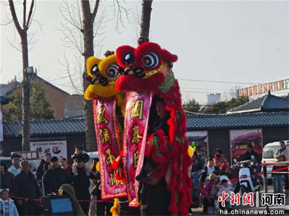 图为舞狮表演吸引游人拍照打卡。李海珠 摄