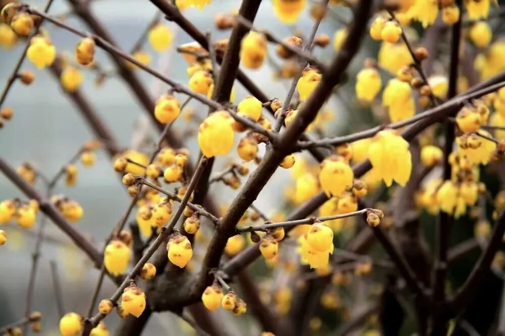 嫩黄的蜡梅花缀满枝头,