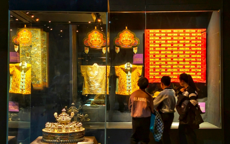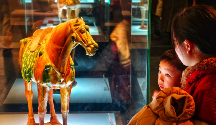 春节期间,游客在洛阳博物馆参观,感受文博魅力。
