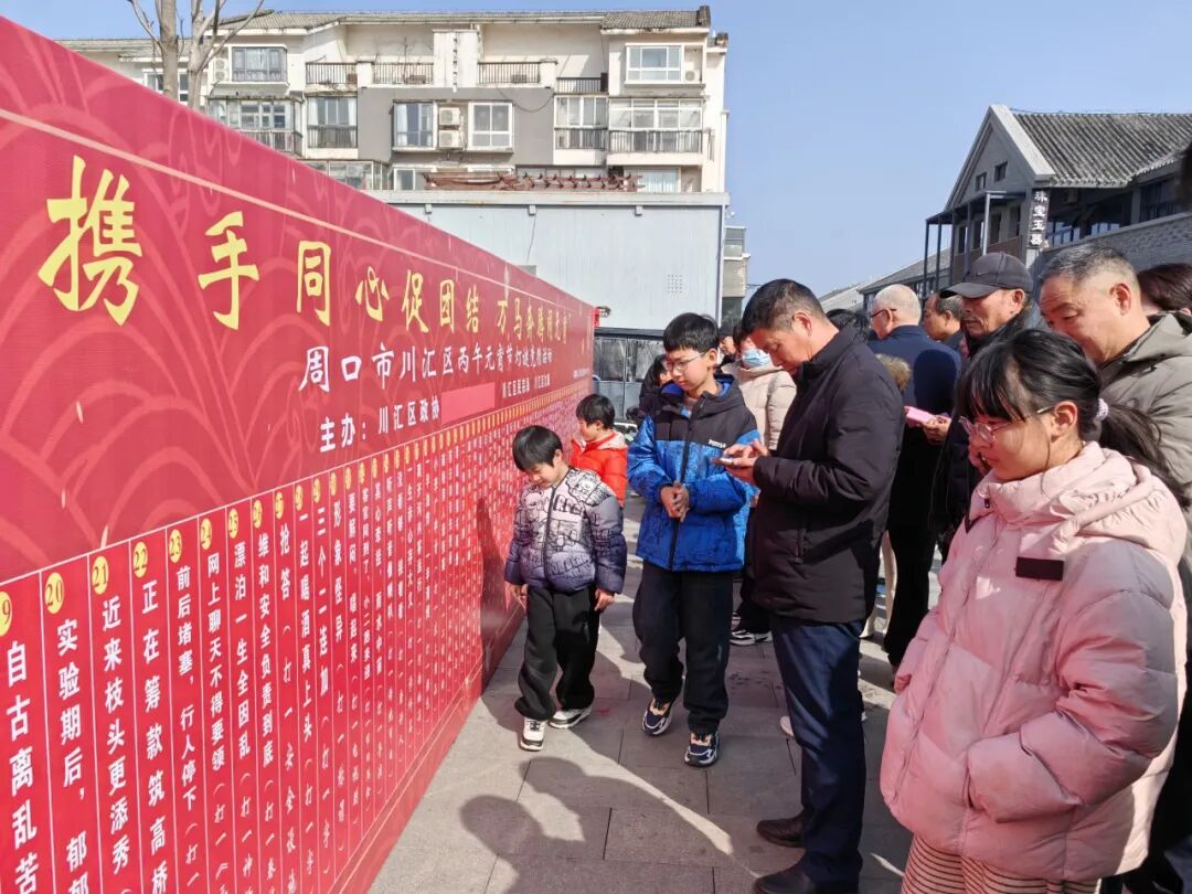 广场一侧的灯谜墙前,市民或凝神思索、或结伴探讨,猜出谜底后便可领取精美小礼品,喜悦之情溢于言表。此次灯谜谜面涵盖历史典故、民俗文化,更巧妙融入周口本土元素,让大家在猜谜益智的同时,加深对家乡的认知与热爱。