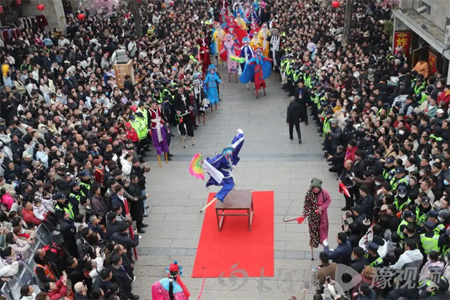 此时,文治阁附近已是人山人海,观众们翘首以待。东后街村火神会前更是锣鼓喧天,东后街社火队伍正在做最后的准备,等待13时进入古城进行巡街表演。
