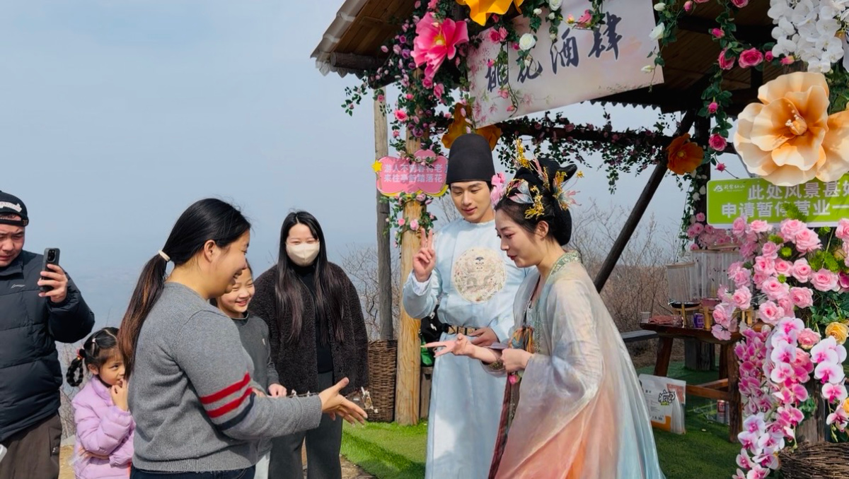 最热闹的当属“桃花酒肆”互动区。“桃源仙君”仙风道骨,正在为游客讲述荆紫仙山的历史传说。“仙君,能合个影吗?”“仙君,桃花什么时候最盛?”游客们围着仙君问个不停。来自洛阳的游客张先生笑着说:“本来只是来看花,没想到还能和‘神仙’互动,孩子开心得不得了,这趟来得值!”