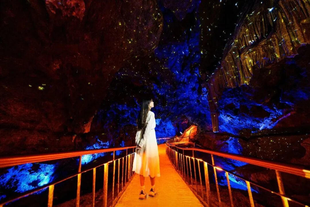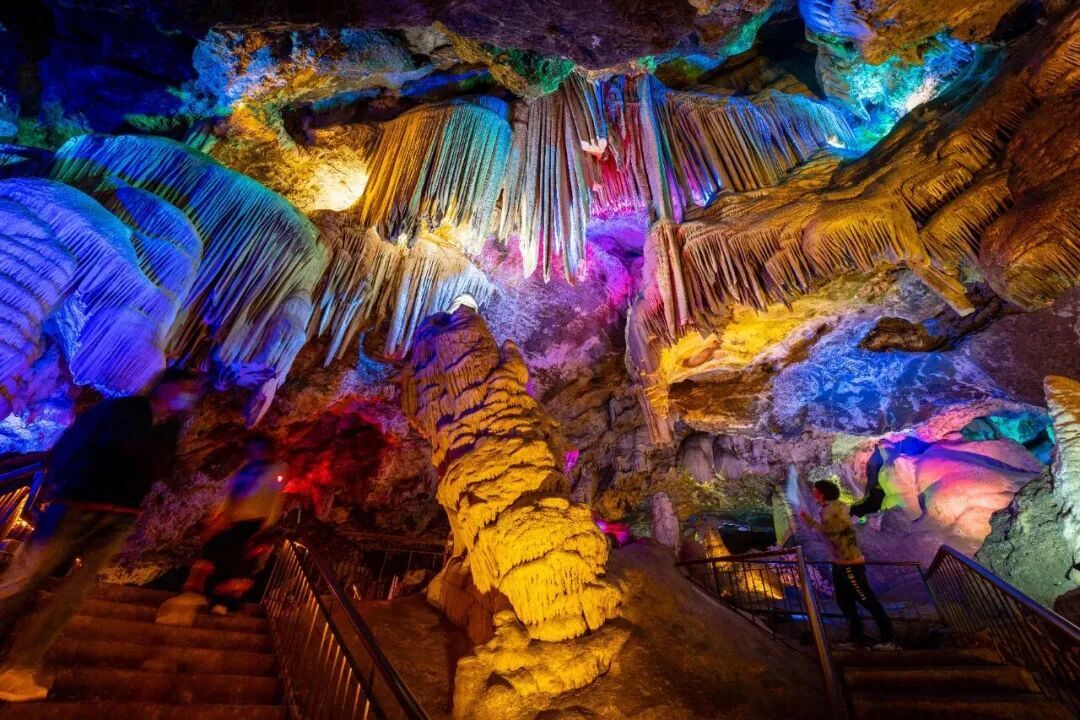 轻徒步路线:洞内恒温18℃,步行其中如逛天然空调房。玉柱潭、溢彩殿、瑶池宫……六亿年时光雕琢的钟乳石奇观,全程1.5-2小时,不知不觉完成一场“地质博物馆”里的有氧漫步。