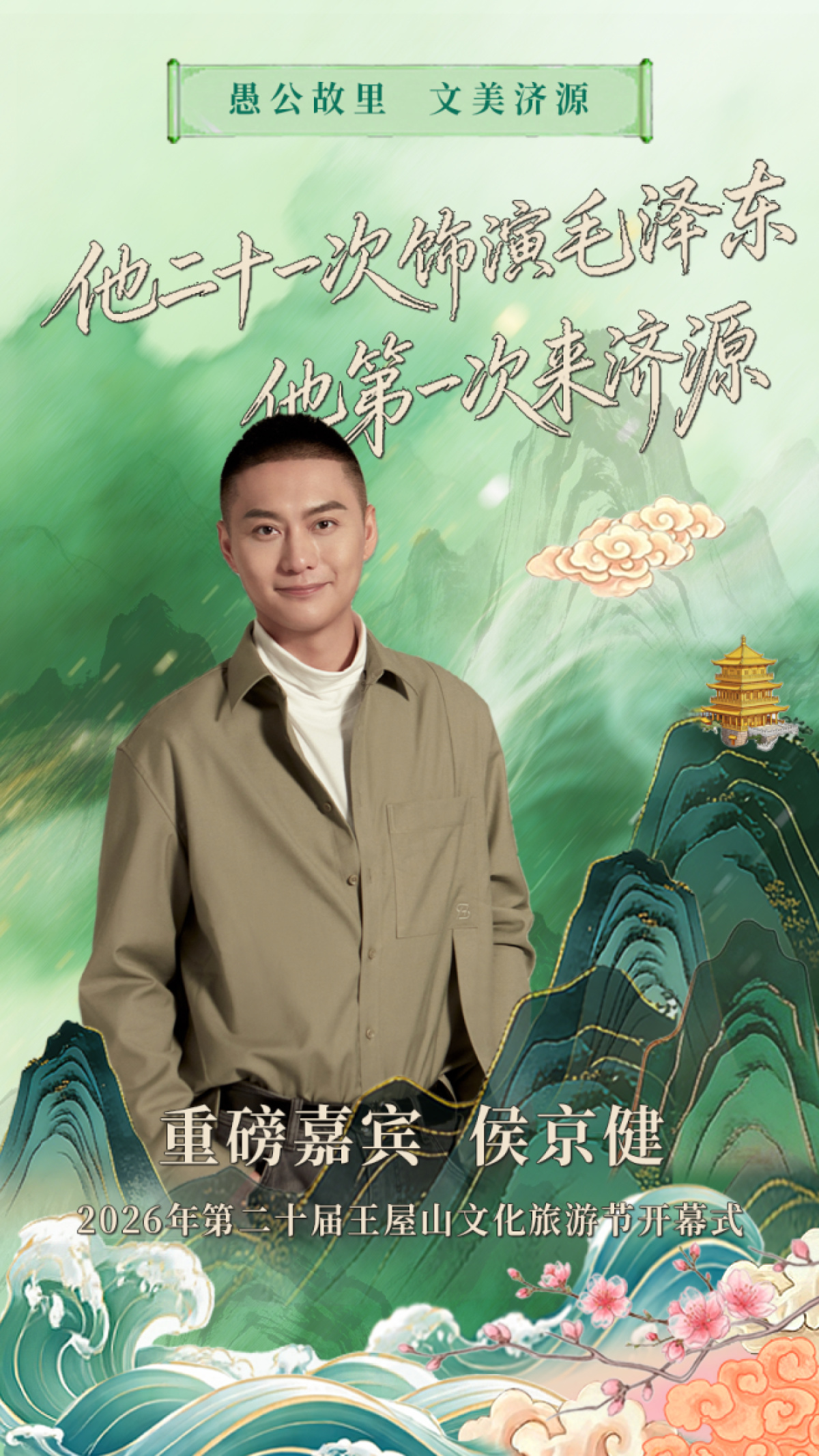 侯京健, 著名演员(电视剧《觉醒年代》等20余部影视作品中饰演青年毛泽东),是红色文化与文艺精品的优秀传承者。此次来到王屋山下,他将感受这片红色热土的脉动,用声音与情感演绎文艺之美、文学之美,让愚公移山精神在新时代的艺术表达中焕发新的光彩。