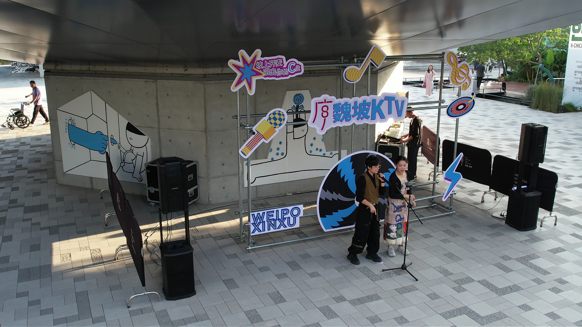 东侧却是截然不同的新潮天地,清水混凝土搭配木质结构,简约又高级,玻璃幕墙让光影肆意流动。这里没有俗套的商铺,全是年轻人趋之若鹜的“首店集群”:北京来的止痒商店里,几位年轻人正对着趣味标语拍照。