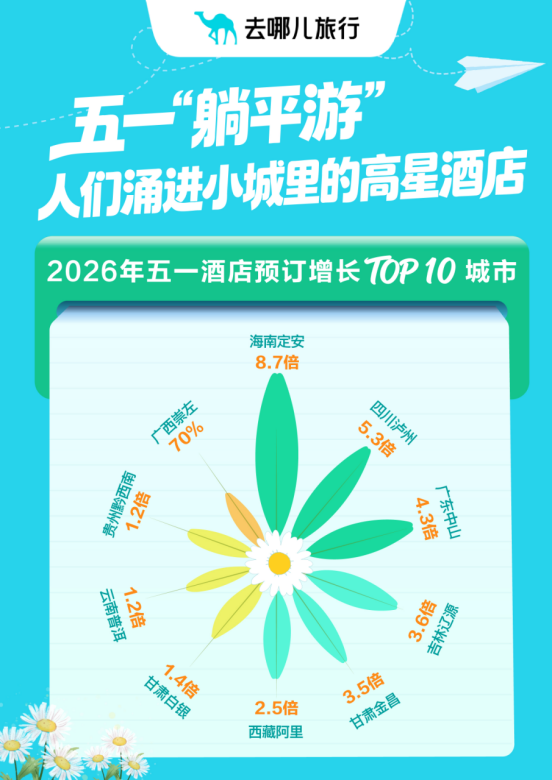 去哪儿旅行数据显示,4月16日,2026年"五一"出行的机票和酒店预订已进入高峰期。受机票价格上涨等因素影响,今年五一,更多人选择乘车出游,距离省会城市5小时车程内目的地预订增幅明显,热门三线及以下城市酒店预订量同比翻番。去小城,住高星酒店,换一个场景体验生活,“躺平游”成为许多年轻人的新选项。