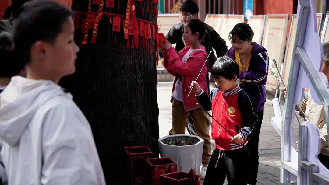 互动体验区人气十足。拓片制作、斗拱积木拼装,让大家在动手实践中感受非遗文化与古建智慧;投壶、套圈、射箭等国潮游戏深受孩子们喜爱;文博知识有奖问答环节,现场群众积极参与,答对即可获得文创帆布袋、共命鸟钥匙吊坠等小礼品,气氛热烈又轻松。