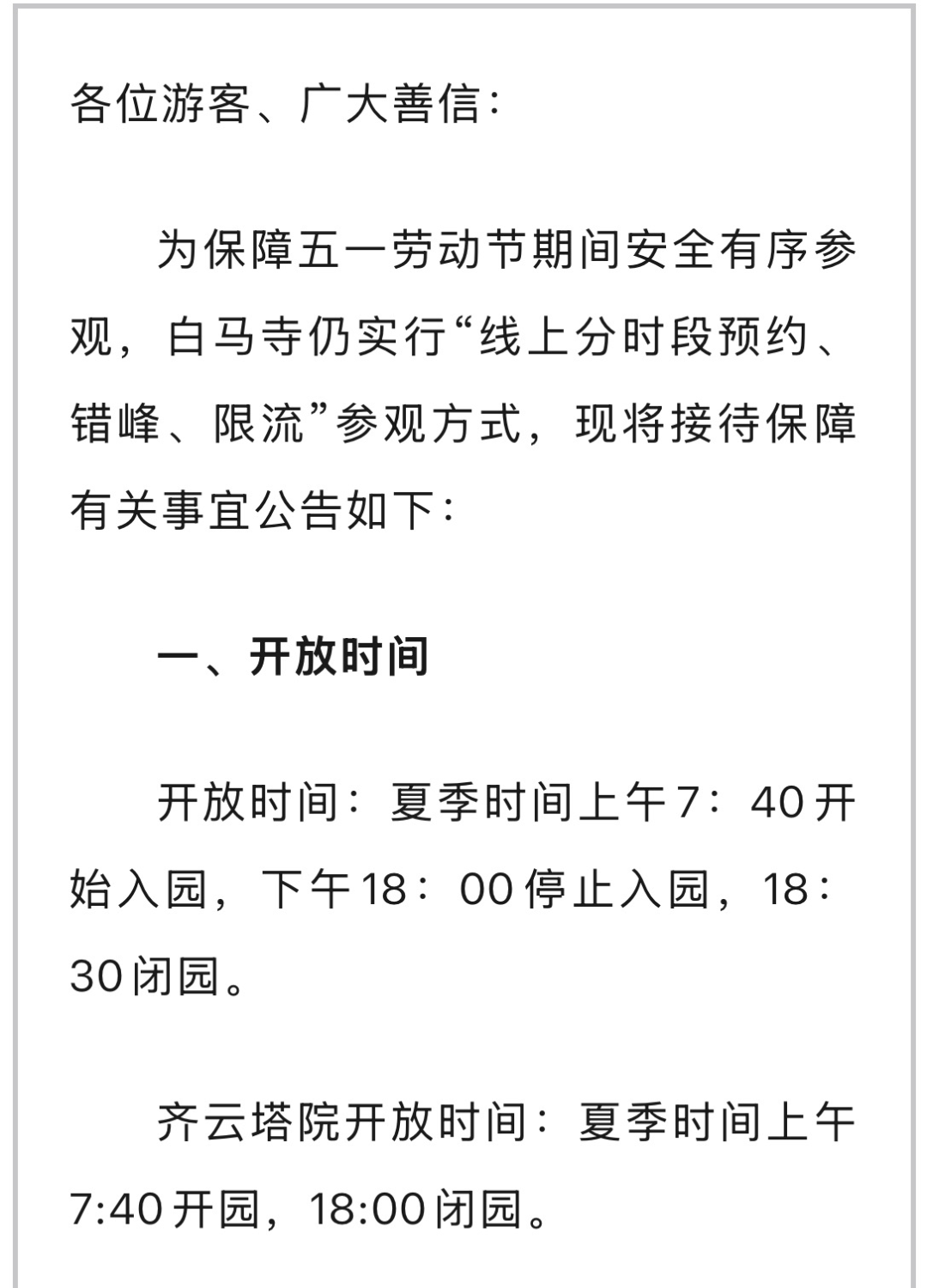 洛阳白马寺五一劳动节期间