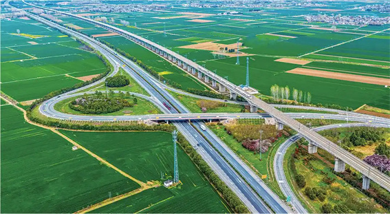 3月26日,在郑渝高铁新野县境内,列车疾驰而过。图源:南阳日报