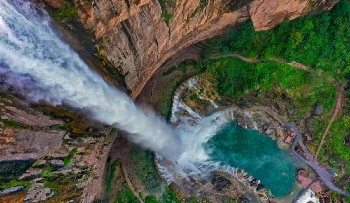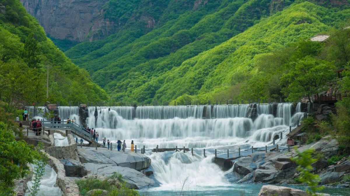 核心景观太行天河瀑布落差近180米,从葫芦崖奔腾呼啸而下,水雾弥漫间彩虹若隐若现。还有长达200米的水帘洞,可以让游客全年从瀑布背后穿行,亲自深入“水帘洞”,感受“飞流直下三千尺”的震撼水雾扑在脸上的清爽瞬间。