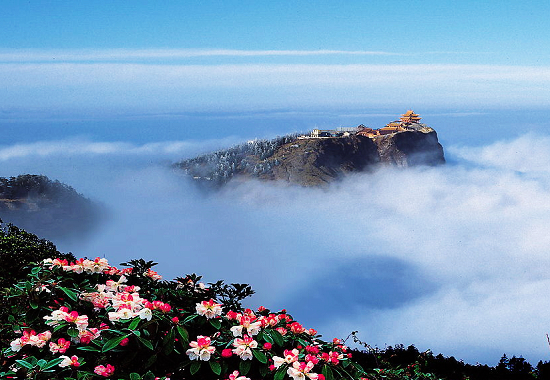 峨眉山位于四川峨眉山市境内,景区面积154平方公里,地势陡峭,风景秀丽,有“秀甲天下”之美誉。峨眉山又是中国四大佛教名山之一,寺庙众多,特别是金顶,更是寺庙和景点集中之处,游客可在陡峭的岩边欣赏日出、云海、佛光、圣灯四大奇景。如果天气晴朗,还可远眺贡嘎雪峰。所谓佛光,是从金顶的睹光台远望,台前白云平铺,阳光照在云层上,可见明亮艳丽的七彩光环,被称之为“佛光”。据说影入佛光可获吉祥,故名金顶祥光。云海是金顶另一奇观,每当晴空万里时,深谷雾起,弥漫于睹光岩前,越积越厚,一望无涯;峨眉顶部诸峰在茫茫云海中犹如孤岛。如空中无风,云面似镜,寂静无声,仿佛置身于蓬莱仙境;如遇风起,云海波涛翻滚,犹如万马奔腾,气势磅礴,非常壮观。而“圣灯”,实际上是有大自然中的磷化氢燃烧而产生的——月黑风清的夜晚,岩下幽谷就会闪出这种光亮,产生一种奇妙的效果。
