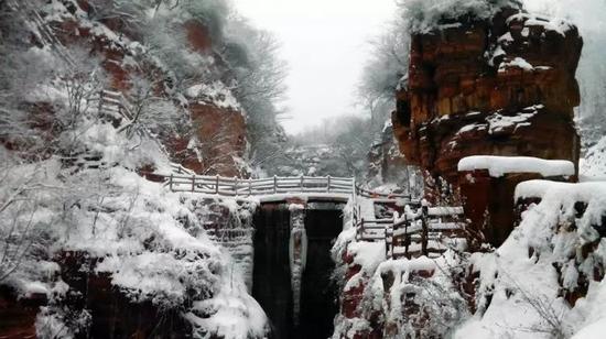 赏冰雪,写生摄影正当时。绝壁长廊长1250多米,完全由人工开凿,被誉为 “世界第八大奇迹”。雪中观赏别有一番滋味。