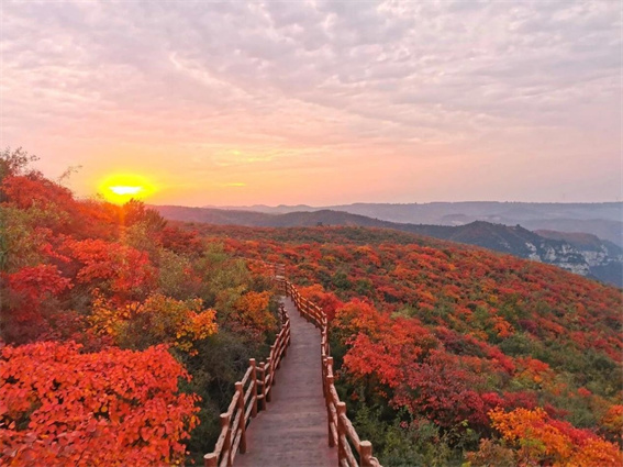 王维诗里的云台山如今正褪去绿意,换上红衣。登临茱萸峰,看群山连绵在云雾中若隐若现;漫步红石峡,丹霞地貌与碧水清潭在红叶点缀下相映成趣。十月中旬的柿子红了,也是秋天写给大地的情书。从十月的色彩斑斓,到十一月的红如火焰,这里的秋色持续在线。
