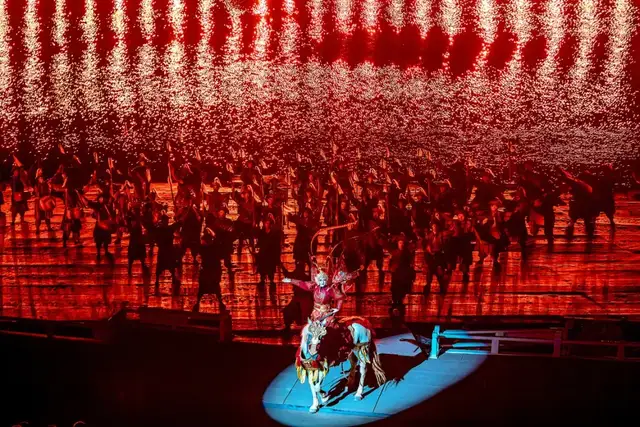 漫天飞雪伴随着梦幻的冰上表演,