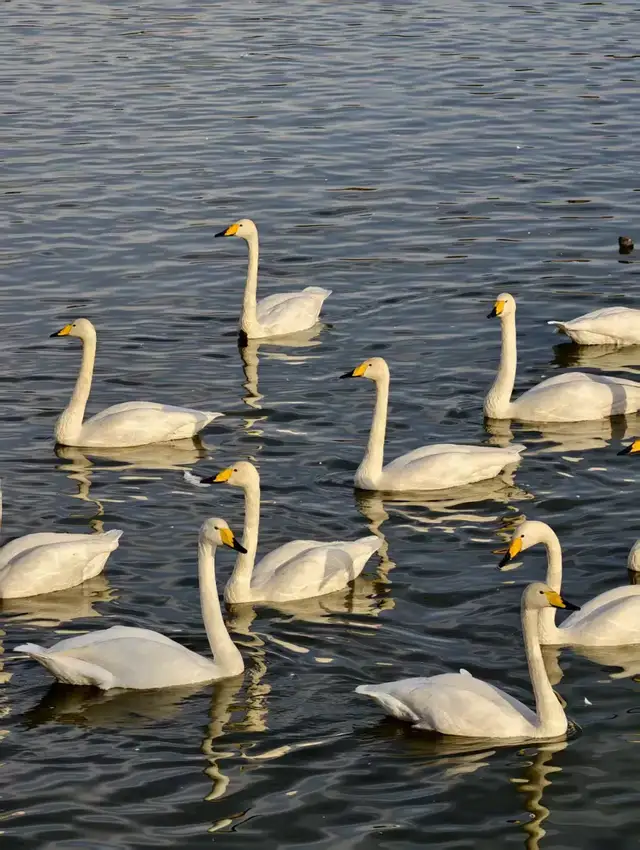 随时可与上万只越冬的大天鹅、