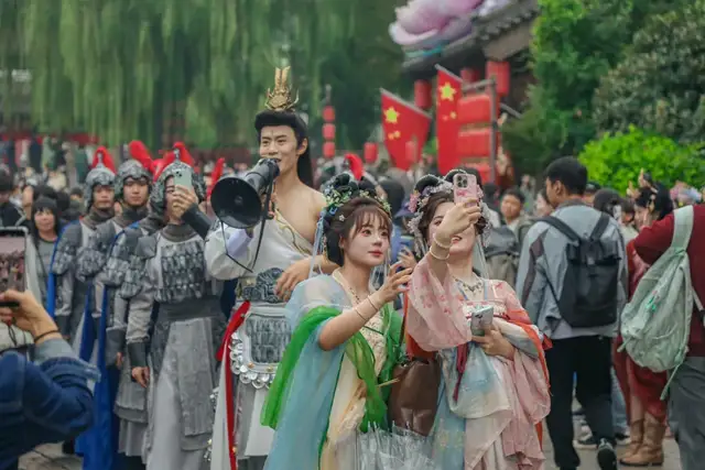 身着汉服穿行其中,