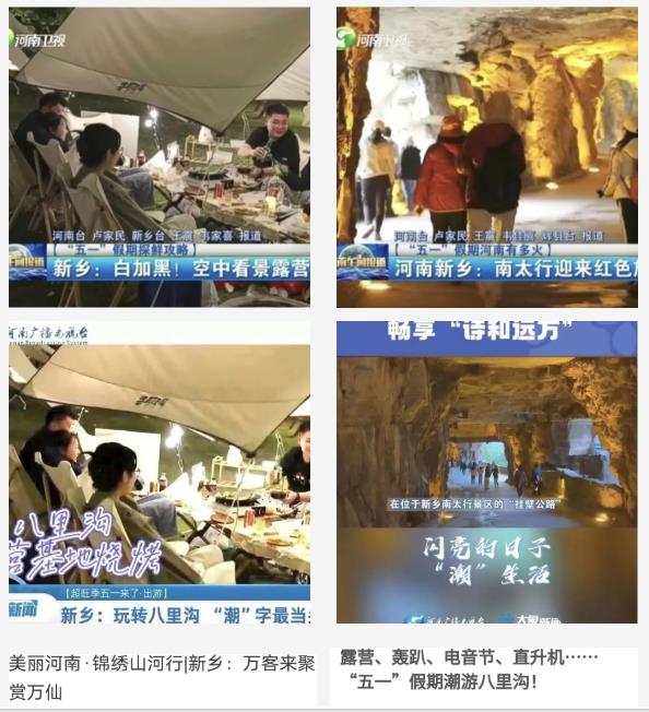 此外,河南新闻联播、河南广播电视台9次将镜头聚焦新乡南太行五一假期,河南日报也报道各景区五一特色活动。
