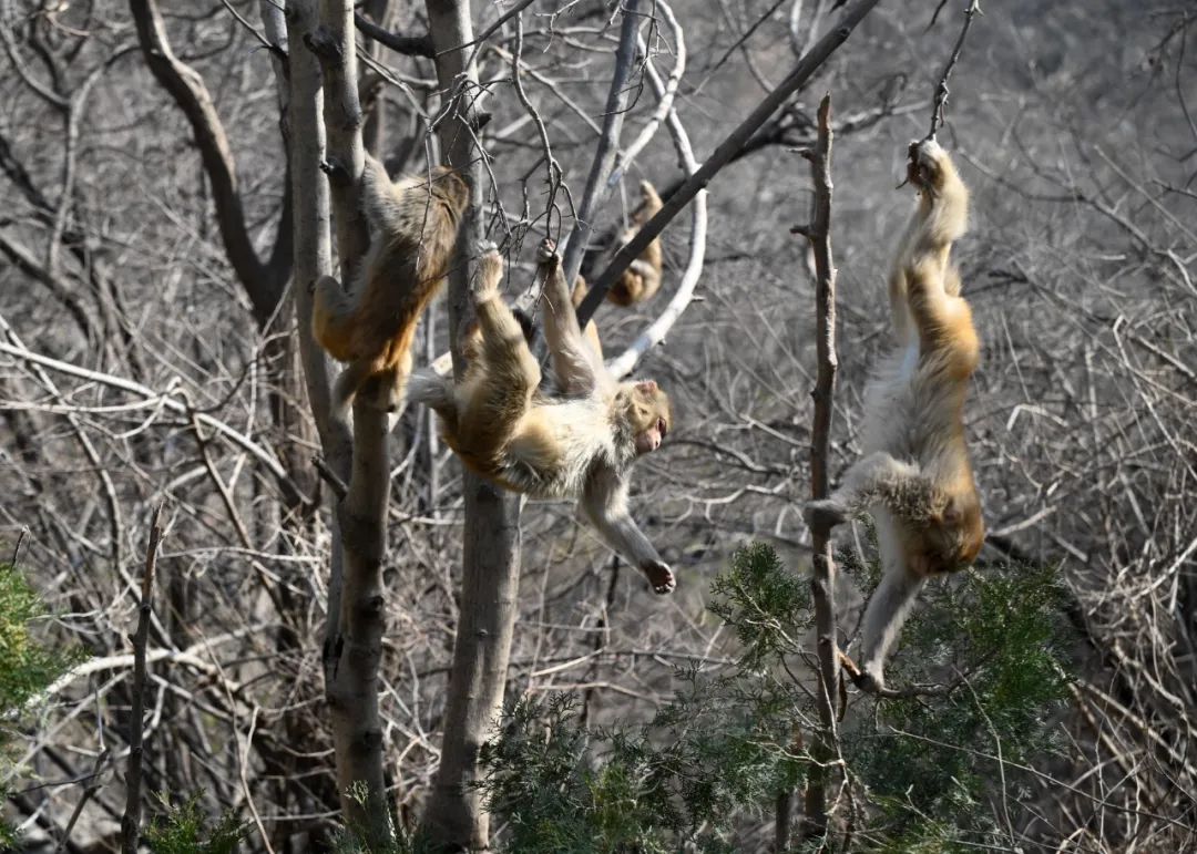 春天的神农山阳光灿烂,万物复苏,连小猴子们都忍不住穿梭在山野树梢间了。一群太行猕猴流连在林间,它们沐浴着暖阳,在山间嬉戏玩耍,给春日神农增添了几分灵动。
