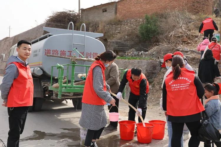 启动仪式后,植树大军带着铁锹、锄头、水桶等工具,兴致勃勃,在各自的植树区域三人一组或五人一队,分工合作,挥锹铲土、扶树定根、培实新土、提水浇灌,一气呵成,合力栽下一棵棵树苗,植下一片片新绿,以实际行动扮靓生态底色,为建设富美淇县添彩增绿。
