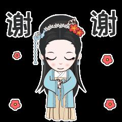 在宋代的时装审美中,女性的衣装讲求以瘦为美,服装追求细而长带来的美感。天青色的恰到好处的美感,引领着宋代的审美,这也让宋代女装与以前各个时期不太相同,各种间色的应用成为宋代服饰的典型特点。在表情包设计过程中,与汝瓷同样颜色的青色对襟长衫,配以白带浅棕色的底裙,与汝瓷制品的配色相得益彰,在卡通形象中也让人感受到了汝瓷的美感。宋代文化与汝瓷文化也巧妙结合其中。