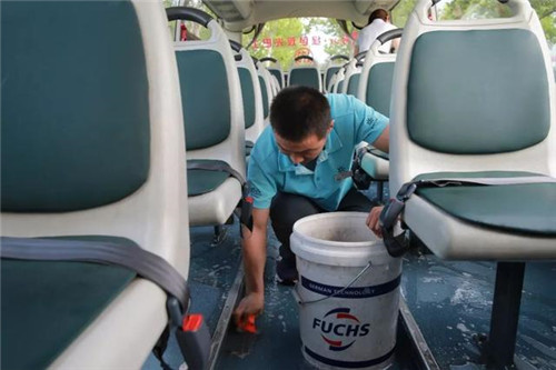 为了给游客提供一个良好的乘车环境,他们每天都要对车辆进行全面清洁,每一个角落都不放过,时刻保持车辆卫生。