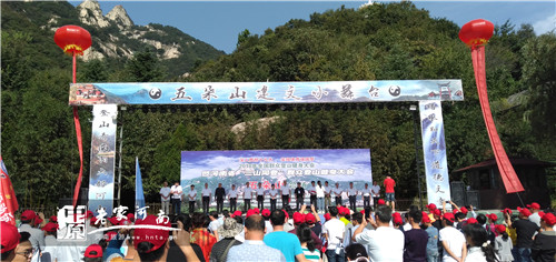 9月22日,2018年全国群众登山健身大会暨河南省第八届“三山同登”南阳五朵山登山健身大会在南阳五朵山景区拉开序幕,河南省体育局群体处处长赵峻、河南省旅游局机关党委副书记杨文波、南阳市人民政府副市长刘庆芳、南阳市体育局党组书记、局长畅强、中共南召县委书记刘永国、南召县人大常委会主任朱晓栓、南召县政协主席张智广、南阳市旅游局党组成员、副局长何清印、南召县人民政府副县长赵群梅、南召县旅游外事局局长柳绘、南召县体育中心主任马玉江、四棵树乡党委书记王浩、五朵山集团董事长王亚洲等领导出席活动开幕式,来自全国的300多名专业登山运动员和1000多名群众登山爱好者齐聚南阳五朵山,领略道教文化,尽享山水美景,品味登山乐趣,决战北顶五朵山。