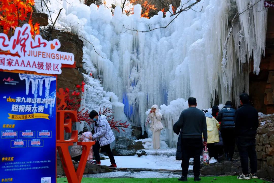 这个元旦,九峰山的冰挂是火出圈了,吸引了大批游客打卡游玩。