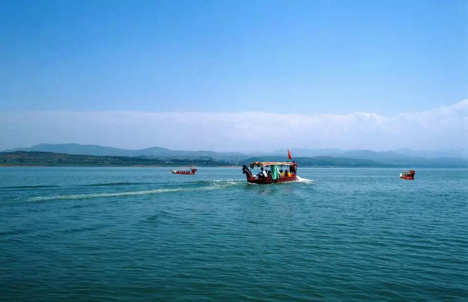 泛一叶扁舟,在这碧绿澄澈的湖畔上,望着如镜的水面倒映着群山和白云,山水相映一色,怎么看都不腻。