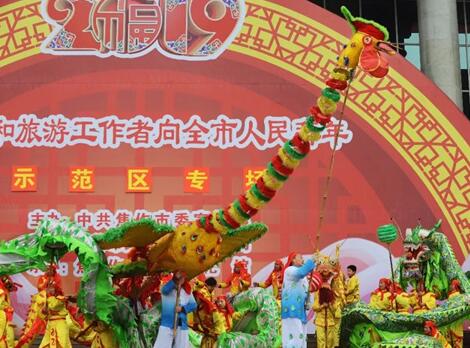 龙凤灯舞、大辫子戏、黄河盘鼓、高抬火轿、景明虎舞、哼小车、黄河泥埙……一个个非遗项目在“出彩河南·欢乐怀川·春满山阳”焦作市2019年春节优秀文艺节目展演中展示出无穷魅力;斗笠舞《红海红,中国红》、藏舞《心声》、彝舞《山涧飞舞》、戏歌《美丽陈家沟》……一个个歌舞节目让观众感叹。2月16日、17日,来自沁阳、温县、示范区、武陟的演出人员冒着严寒,在东方红广场为市民奉上精彩的文化大餐。