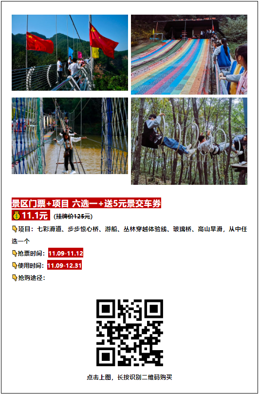 截至11月10日,免票活动圆满结束! 但是, 【九峰山双11年终钜惠来喽】