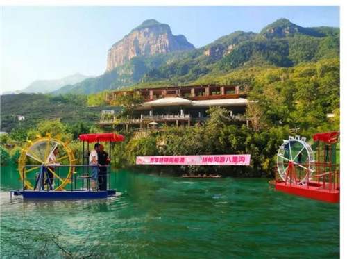 拼船同游八里沟。