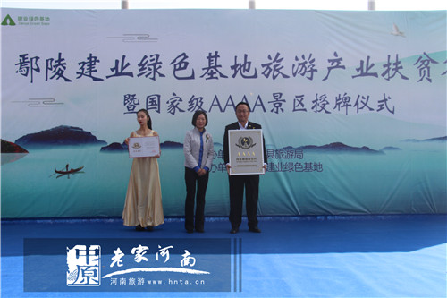 许昌市旅游局副局长吴验兵向建业绿色基地授牌