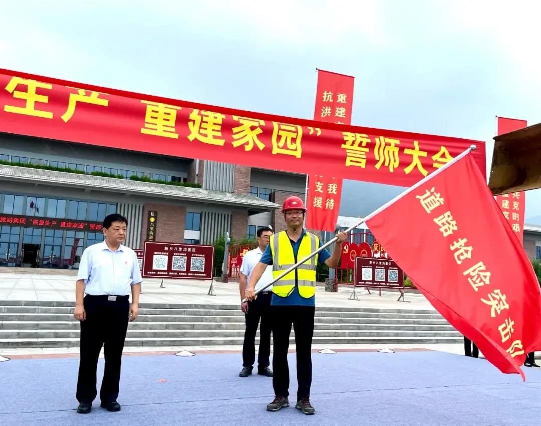 7月19日至22日,河南省北部、中东部遭遇了强降雨极端天气,多地被水淹,新乡南太行旅游度假区也损失惨重。为切实做好洪灾过后景区的重建工作,进一步动员全体员工统一思想,团结拼搏、齐心协力,努力推动灾后重建工作深入开展,7月29日,新乡南太行旅游有限公司召开了“恢复生产,重建家园”誓师大会。关山景区在集团公司的统一部署下,景区广大党员干部和员工,发扬不怕苦、不怕累的工作作风,迅速投入到恢复景区交通、修复景区基础设施、开展消杀等灾后自救工作中去,尽快恢复景区面貌,重建家园。