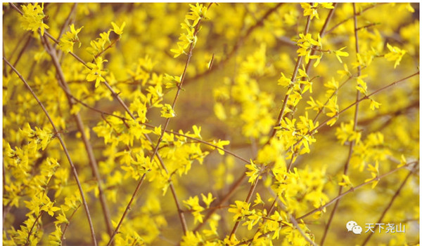 迎春花,也叫报春花,是春的使者。迎春,最早给尧山带来一个金色的春天。