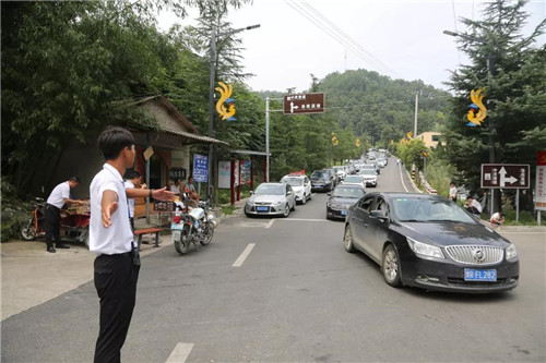 随着车流量的不断上升,景区的秩序依然良好。车辆在工作人员的指挥下有序行进。