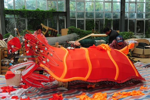 裱糊工需要把大小合适的缎子、布料按照设计要求,用专用的胶粘贴在焊接好的工艺灯“骨架”上,之后再在灯组表面手绘图案。如此复杂的工序全靠师傅们独特的匠心和一双双巧手打造出来,更是十分需要耐心。