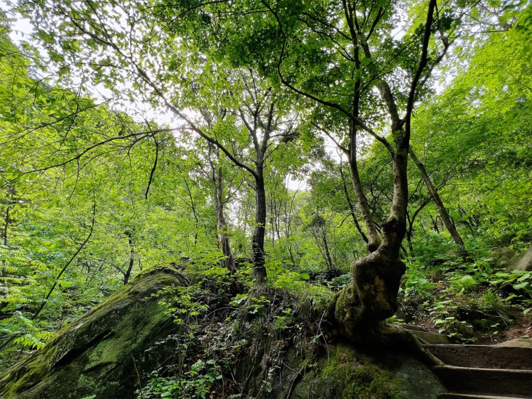 近几日雨水充沛,经历了春雨沐浴的老君山,草木葱茏,尽显清新。