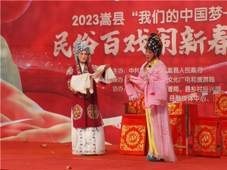 回归传统,年味浓郁。大年初一上午,嵩县音乐喷泉广场主会场,一鼓鸣,万鼓和,嵩县十六个乡镇百村千鼓万人“鼓舞嵩州”同时擂响嵩县人的精气神。嵩县河洛大鼓、靠山簧、高装、铜器、排鼓、担经担舞等非物质文化遗产演出项目,新春第一天在农村、在景区、在乡村旅游点纷纷出场,县城主会场新春、新生、新奇、新意、新颜等九大活动和十六个乡镇分会场“宜居宜业 和美嵩县”民俗百戏闹新春活动等十二项活动精彩纷呈,营造了“民俗百戏闹新春,红红火火过大年”的浓郁传统年味场景。春节共举办线上、线下各类群众文化活动223场次。嵩县群众欢乐过年,各地游客开心度假。兔年春节,嵩州大地欢乐祥和。