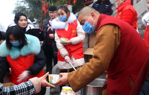 记者了解到,每年腊八,芒山寺的僧众和义工都会为芒砀小镇的百姓和游客准备一个难忘的腊八节。今年芒砀山旅游区特别在芒山寺、芒山镇敬老院、高铁永城北站设置了腊八粥服务点,为前来游玩的游客、孤寡老人、环卫工人以及刚刚踏上家乡土地的游子送上一份碗热腾腾的福粥,让这个冬天不再寒冷。