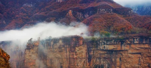 新乡南太行作为森林覆盖率95%的国家森林公园,漫山的植被,在秋风之下,渐渐的上色,由黄至红,最后如蝴蝶般盘旋落下枝头,构成当下最美的画卷。