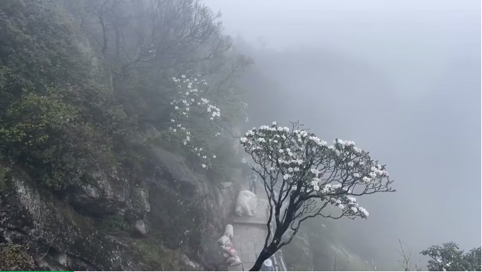 5月14日,洛阳白云山景区海拔2216米的玉皇顶罕见夏日飞雪!从早上7点开始,到下午一点半还在持续下,山间绽放的杜鹃花瞬间被裹上了“羽绒服”显得更娇艳别致,立夏时节“雪里红花”夏景与冬雪共赏的景致,让游客们纷纷赞叹白云山的神奇。