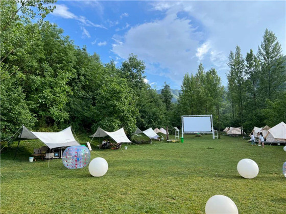 帐篷露营区可容纳60顶帐篷露营,体验露天电影、帐篷灯光秀、户外KTV等户外休闲的乐趣,收获渴望已久的自由和轻松愉悦,重拾生活中的仪式感。