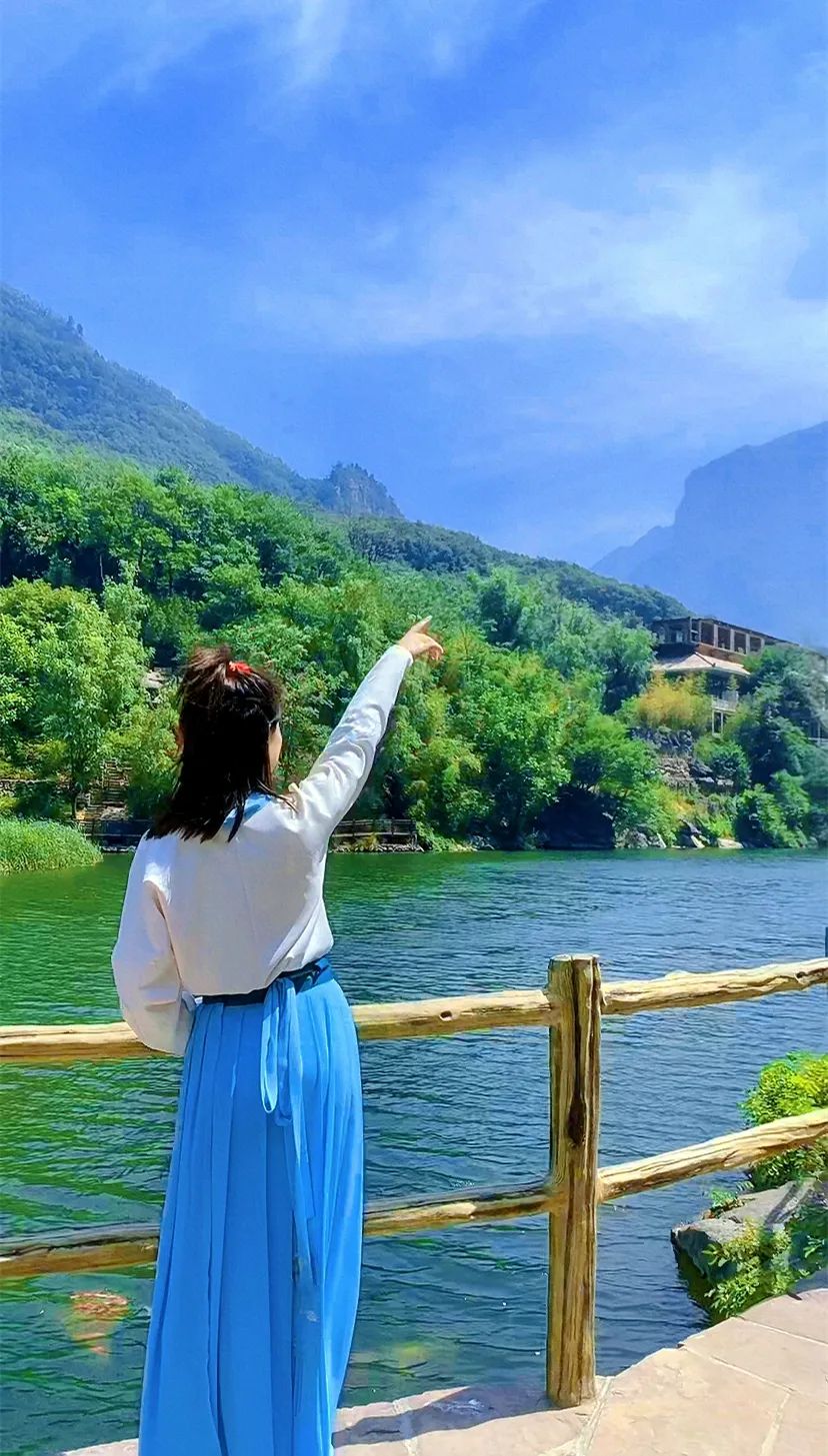 湛蓝的天,墨绿的山,清幽的潭,初秋的八里沟收敛了夏意的盎然,变得沉静,变得安然,一切都仿佛是从《诗经》里走出来的婉约佳人。