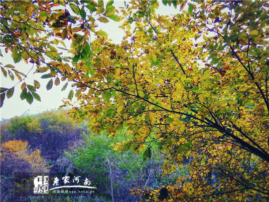 站在观景台上与走在谷中又是另一种不同的感受,刚才还是浓阴敝日,此刻在这里却是光线亮了许多,有种豁然开朗的感觉。极目四野,远处的山岭、脚下的瀑布尽收眼底。这里不仅是观赏秋天红叶的绝佳位置,也是摄影创作的好地方。远处山岭上生长着茂密的天然次生林,植物种类繁多,有几十种秋天红叶的植物,漫山遍野层林尽染,赤橙黄绿紫争色斗艳。近处可赏片片红叶如玛瑙剔透玲珑。脚下的瀑布湍流不息,日夜奔腾。这是一个关于色彩的童话王国,是一首诗,是一幅画,是一首歌。