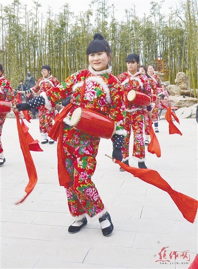 如果说濮阳杂技精彩纷呈,那么来自武陟县龙源镇东仲许村一支身背安塞腰鼓的女子腰鼓队则展现了巾帼风采。