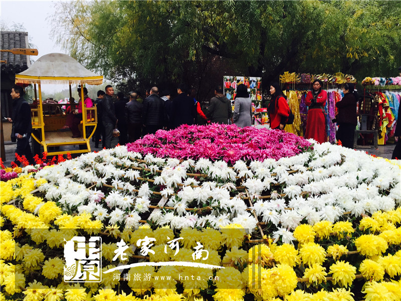满园的菊花依旧艳丽缤纷、菊香四溢。红的似火、黄的赛金、白的胜雪、粉的如霞,清明上河园景区的菊花可谓是多姿多彩。景区的菊花展示如此娇嫩、迷人,穿行其间,让人真正感受到清明上河园的繁花似锦和菊花文化节的盛宴撩人。