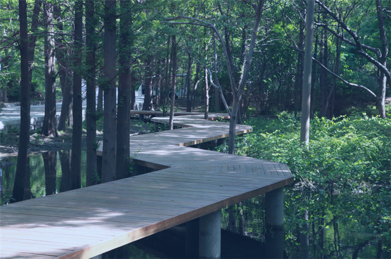 昔日,这一块原来是洋商逍夏避暑集体活动俱乐部,又称菠萝馆。中间的小池子就是荷花池,荷花池周边栽种的全是樱花,是1982年日本静冈访中团赠送的,每当四月中下旬樱花怒放、繁花似锦,荷花池改造成了音乐喷泉,颇具西欧风韵,是游人特别是夏日晚上休闲的好去处。