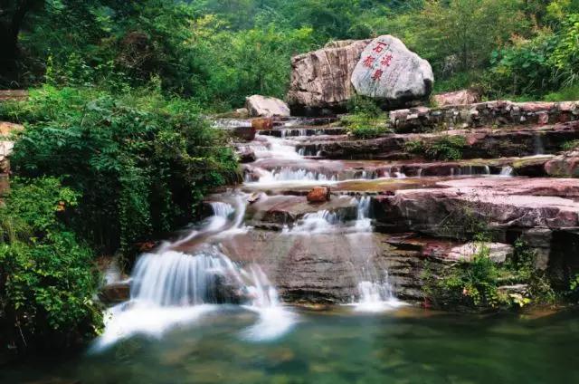 谷内奇峰突兀,峭拔雄壮,沿谷流下的溪水跌落成瀑,瀑落成潭,潭潭相连,美不胜收!