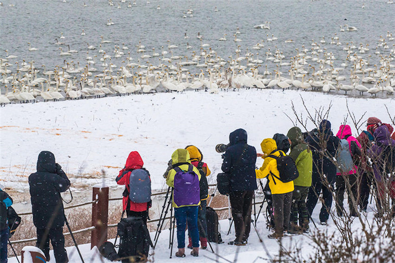 数九寒冬天,三门峡天鹅湖畔每天都有很多人来这里赏天鹅、拍天鹅,这里的天鹅之多令人惊叹。
